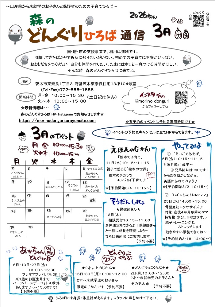2歳以上のお子さんとその弟妹さんが遊べる時間です